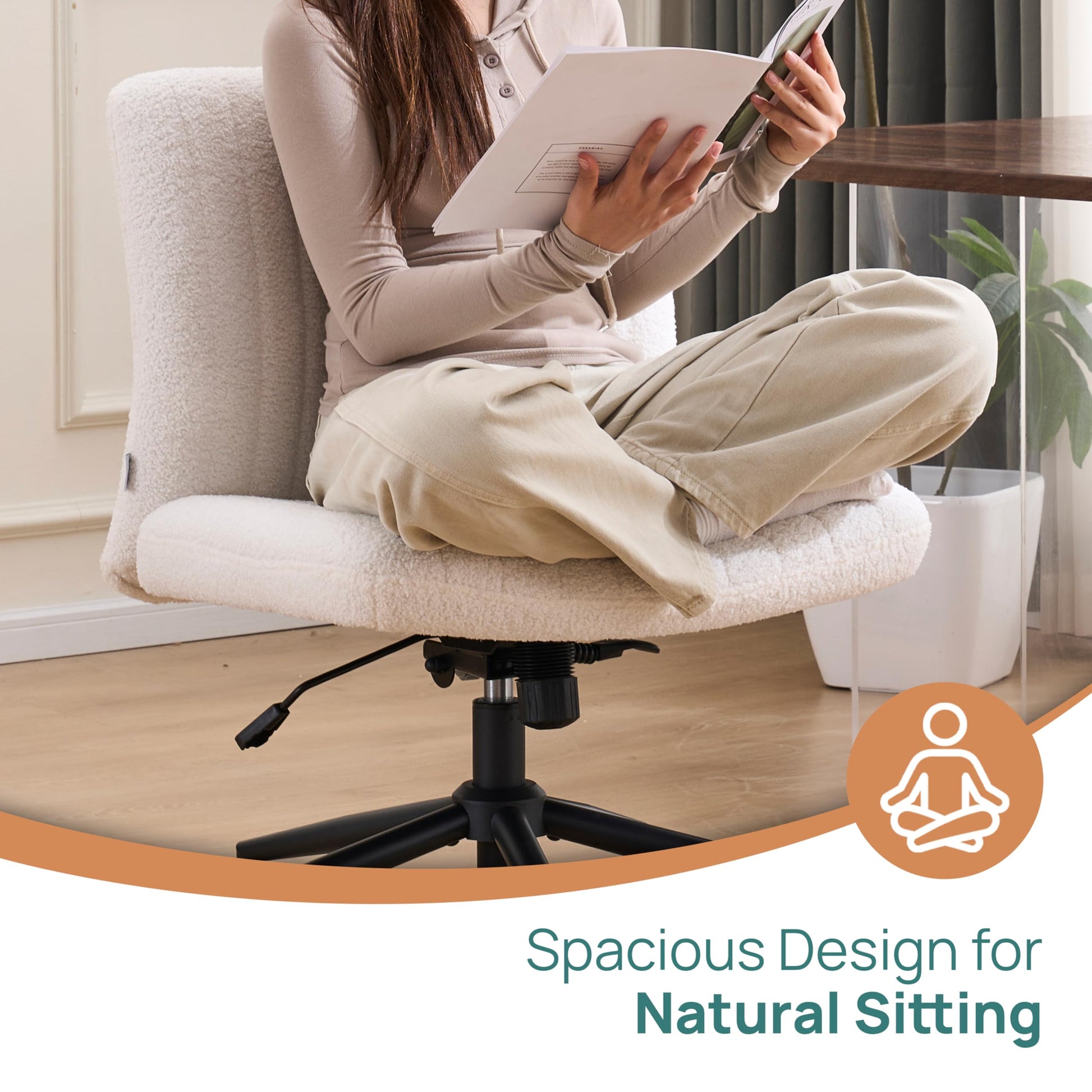 WIDER SEAT: Extra-wide seat design gives you space to sit comfortably, whether traditional sitting or cross-legged style.