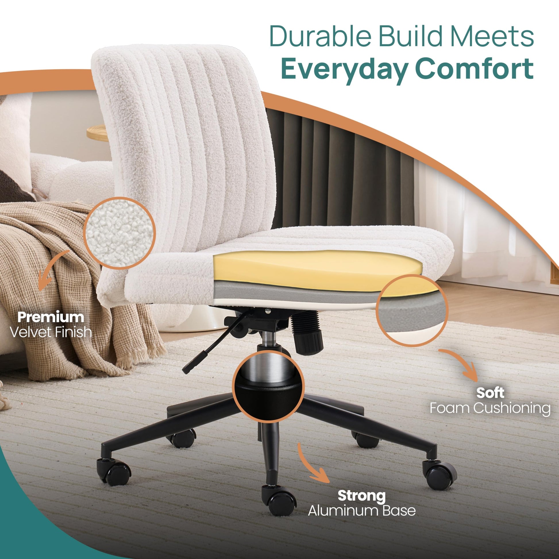 STURDY: Built to last with BIFMA & SGS certified components. Heavy-duty base supports up to 300 lbs.