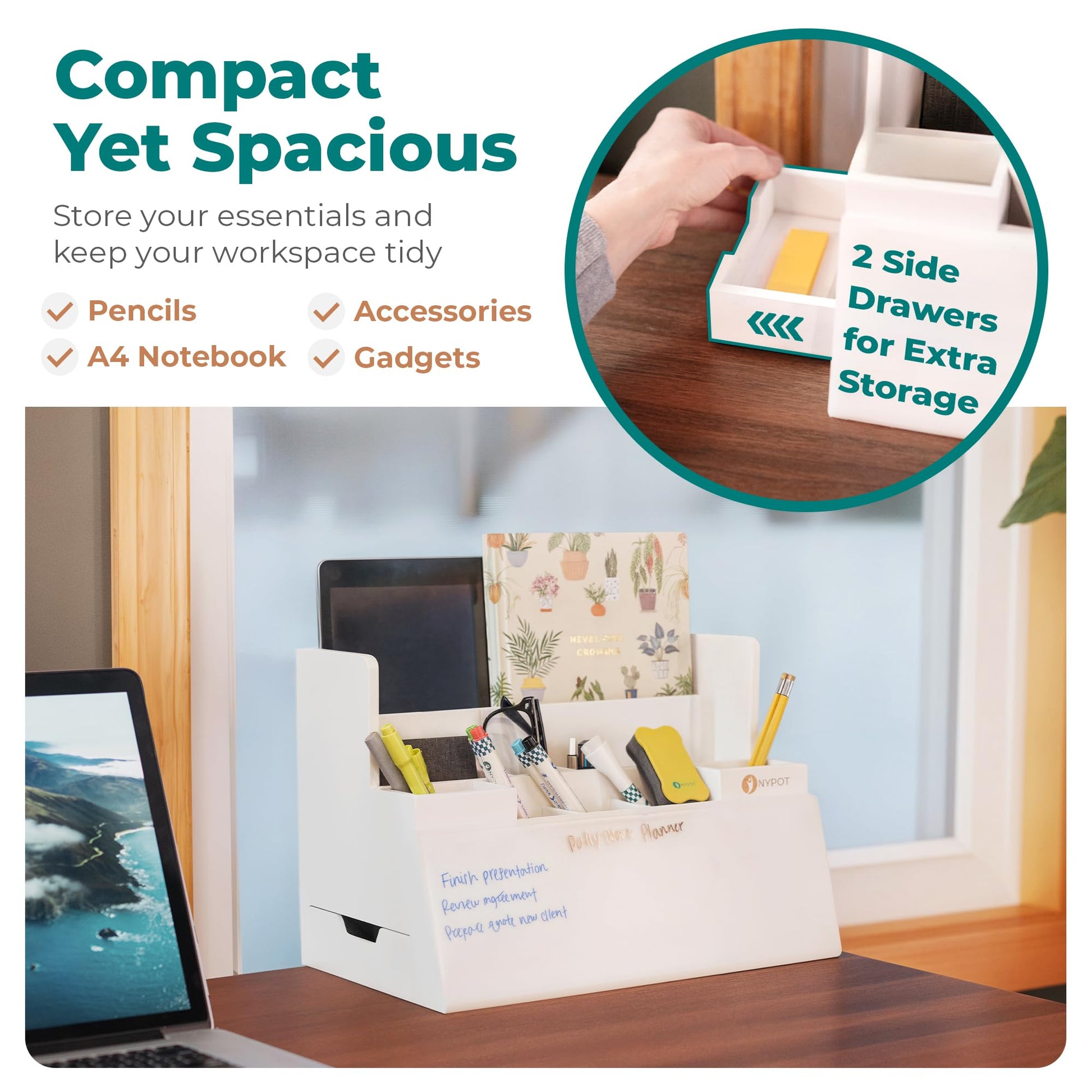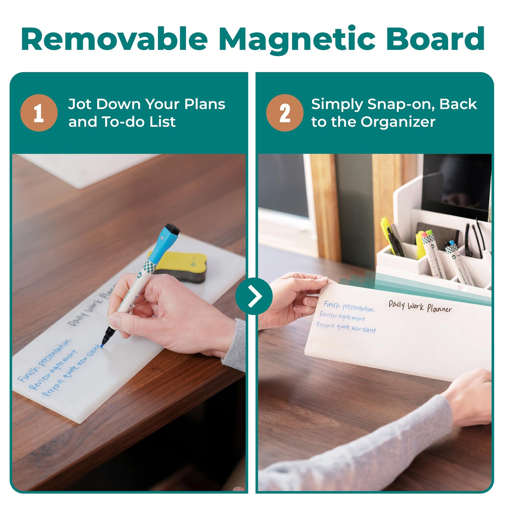 - EFFICIENT SPACE MANAGEMENT: Maximize Space With This Large Desktop Buddy And Desk Top Organizer. Includes A Desktop Whiteboard With Storage, A White Board Desk Organizer For Quick Notes, And A Dry Erase Desk Organizer For Daily Planning.